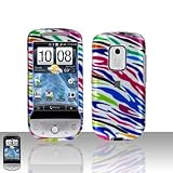 Blue Pink Green Purple Zebra Color Stripe Design Snap on Hard Cover Protector Faceplate Skin Case for Sprint HTC Hero + Belt Clip + LCD Screen Protector Film Guard + Ship in Cardboard box